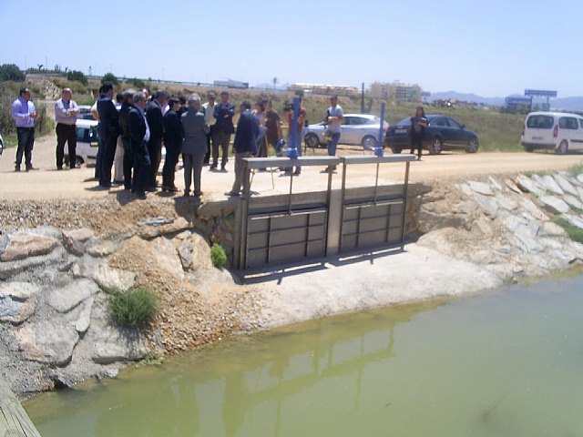 El delegado del Gobierno en Murcia, Rafael González Tovar, la presidenta de la Confederación Hidrográfica del Segura (CHS), Charo Quesada, ha y la alcaldesa de Los Alcázares, Encarna Gil Castejón, han visitado hoy las obras de mejora del canal de drenaje D-7. Esta actuación ha permitido la consecución de tres objetivos: la disminución del riesgo de inundaciones en el municipio, la mejora de la calidad de los recursos hídricos destinados al sector agrícola mediante la reutilización y el fin de los vertidos de aguas salobres a la laguna del Mar Menor. La inversión asciende a 1,25 millones de euros y ha sido financiada con el Fondo Especial del Estado para el Estímulo de la Economía y el Empleo (Plan E) del pasado año.