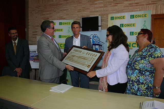 Al término de la presentación los responsables de ONCE han hecho entrega al teniente de Alcalde de una copia de la plancha presensibilizada que sirvió para la impresión de los cupones, así como una reproducción a color del cupón enmarcada.
