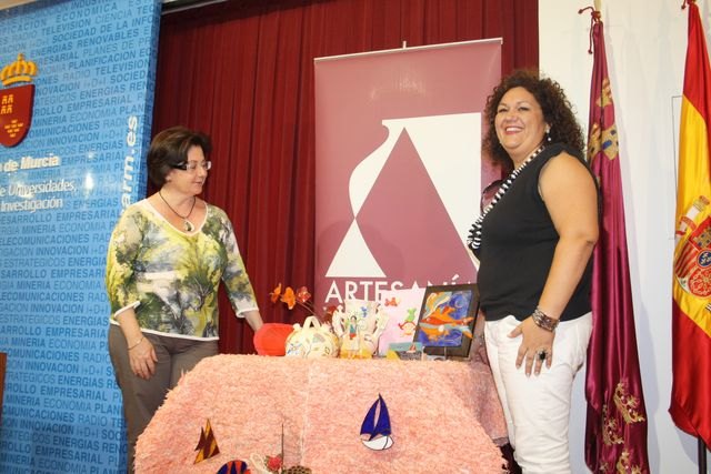 La directora general de Consumo, Comercio y Artesanía, María Dolores Alarcón, acompañada de la concejal de Turismo del Ayuntamiento de Los Alcázares, Maite Olmos, presentaron la X Muestra de Artesanía del municipio, que desde este viernes 12 hasta el próximo 20 de agosto, congregará a una treintena de ceramistas, restauradores, belenistas y bisuteros de la Región, entre otros artesanos.
