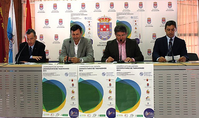 El director general de la Actividad Física y el Deporte, Antonio Peñalver (2i), presentó esta mañana el Campeonato de España Universitario de Taekwondo, que se celebrará durante los días 17 y 18 de mayo en el Centro de Alto Rendimiento 'Infanta Cristina'. En la presentación, a la que también asistieron el alcalde de Los Alcázares, Anastasio Bastida (2d),el presidente de la Federación de Taekwondo de la Región de Murcia, Jose Antonio Solano (1d), y el vicerrector de Estudiantes y Extensión Universitaria de la Universidad Politécnica de Cartagena, Francisco Martín (1i), el director general dijo que el evento es "de lo mejores espectáculos de deportes de combate que se puedem ver en el mundo en estos momentos".