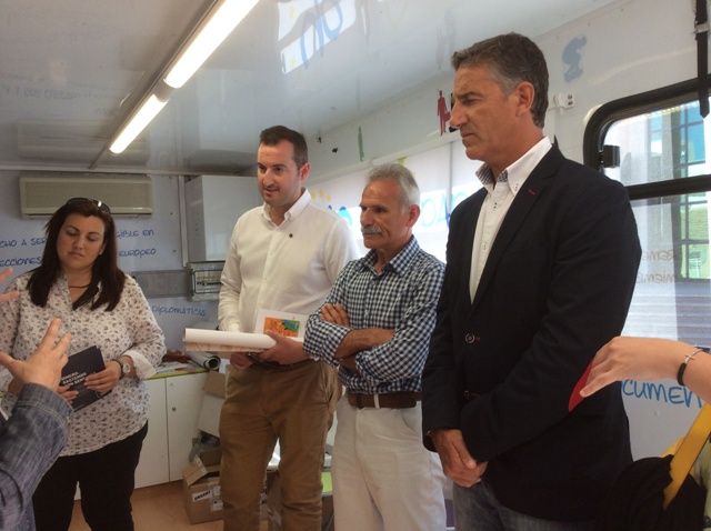 El alcalde de los Alcázares, Anastasio Bastida ha visitado junto a la Corporación Municipal del Ayuntamiento el aula móvil, donde se han interesado por los proyectos que la Unión Europea está llevando a cabo en la Región de Murcia.