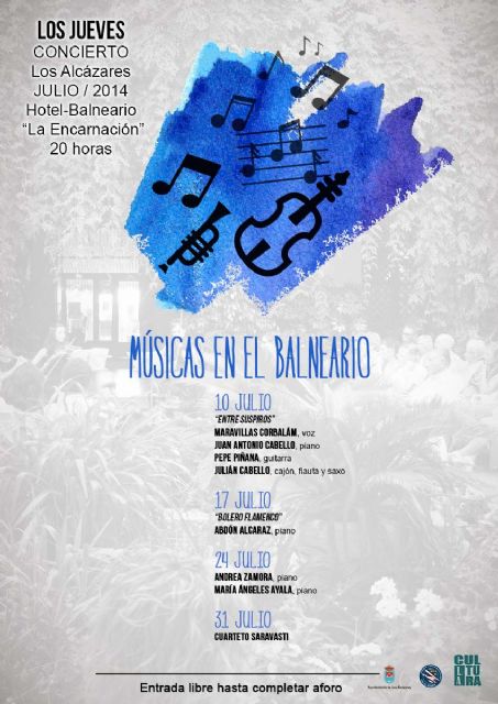 Con más de una década de tradición, en el secular marco del patio del hotel-balneario La Encarnación (Los Alcázares), regresa de nuevo este ciclo de conciertos estivales, organizados por la Concejalía de Cultura del Ayuntamiento de Los Alcázares, que contempla este año cuatro conciertos para todos los gustos.