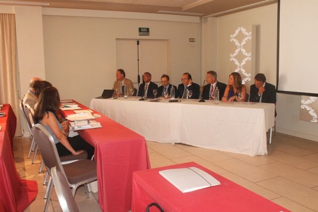 La concejal de Educación y Cultura, Cristina Sánchez, el concejal de Presidencia, Patxi López del Ayuntamiento de Los Alcázares, junto al Rector de la Universidad de Murcia, José Orihuela, han inaugurado el curso de la Universidad Internacional del Mar (Animar) en el Hotel 525 de Los Narejos.