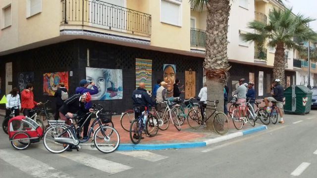 Este sábado han arrancado las Rutas de Arte Urbano, en la que una veintena de curiosos pudieron visitar en bicicleta, unos 25 murales de los 50 existentes, que han sido elaborados por la asociación artística y cultural "La Compañía de Mario"