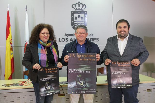 El alcalde de Los Alcázares, Anastasio Bastida Gómez, la concejal de festejos, Maite Olmos Fuentes y el presidente de la Asociación de Peñas Berberiscas, José Luis Giménez Vera han presentado esta mañana la programación de las XIX Incursiones Berberiscas del Mar Menor que como cada año, tienen lugar en el municipio durante Semana Santa.