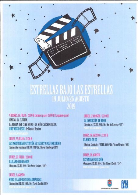 La primera proyección tendrá lugar el viernes 19 de julio en la Plaza del Ayuntamiento, donde los vecinos y turistas del municipio podrán disfrutar de un pase doble a partir de las 22,00 horas de la película de cine mudo ONE WEEK dirigida por Buster Keaton.