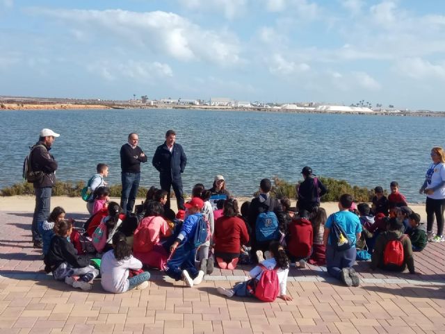 El director general del Mar Menor, Fulgencio Perona, recibió hoy en el Parque Regional de Las Salinas y Arenales de San Pedro del Pinatar a 40 alumnos de quinto de Primaria del colegio 'Bienvenido Conejero', de Los Alcázares, que han participado en una visita guiada dentro del programa de actos del Día de los Humedales 2020.