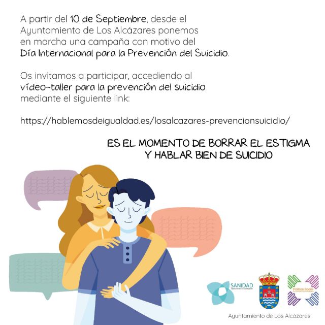 En la iniciativa se podrá participar accediendo al video-taller para la prevención del suicidio a través del portal 'Hablemos de igualdad': https://hablemosdeigualdad.es/losalcazares-prevencionsuicidio/