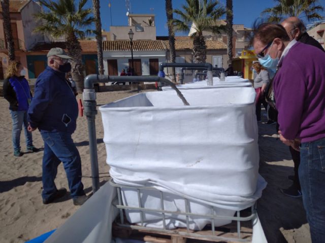 El Ayuntamiento de Los Alcázares puso en marcha una prueba de extracción de fangos del Mar Menor para mostrar a técnicos de la Comunidad Autónoma el sistema y buscar su posible aprobación.