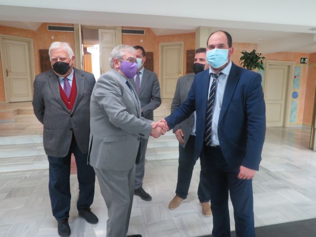 La Asamblea Regional colaborará en la 50 edición de la Semana Internacional de la Huerta y el Mar de Los Alcázares que tendrá lugar entre el 14 y el 24 de agosto de este año. Así lo han anunciado Alberto Castillo, presidente del Parlamento autonómico, y Mario Pérez Cervera, alcalde de Los Alcázares, tras la reunión que han mantenido en la sede del Parlamento autonómico, y en la que también han estado presentes Juan García Serrano, director de la Semana Internacional de la Huerta y el Mar, Manuel Sevilla, diputado regional y José Carlos Castejón, concejal de Hacienda, Contratación y Servicios Públicos, Festejos y Transportes.