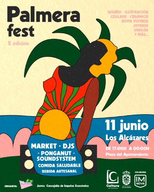 Las concejalías de Cultura y de Impulso Económico del Ayuntamiento de Los Alcázares anuncian la llegada de la décima edición del 'Palmera Fest', el festival de arte, cultura y música de la Región de Murcia que se celebrará el próximo sábado 11 de junio en Los Alcázares.