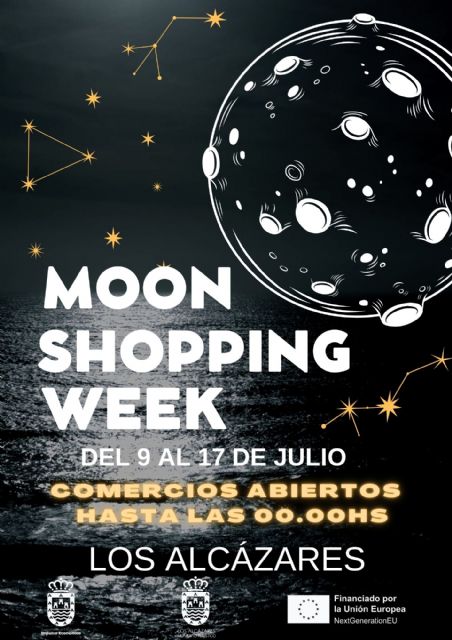 La 'Moon Shopping Week' llega de nuevo a Los Alcázares para seguir dando a conocer la variada oferta comercial que tiene el municipio. Aprovechando la luminosidad que ofrecerá luna llena de la que disfrutaremos el próximo 13 de julio, los negocios de la zona comercial ampliarán su horario comercial hasta las 00.00h para animar a vecinos y visitantes a disfrutar de la noche alcazareña.