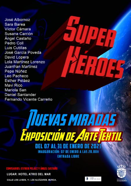 La concejalía de Cultura del Ayuntamiento de Los Alcázares ha presentado la exposición de arte textil 'Súper Héroes' que podrá ser visitada en la Sala Lucernario del Hotel Atrio del Mar del 7 al 31 de enero.