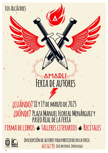 Los Alcázares demuestra una vez más su apuesta clara por la cultura, en esta ocasión apoyando a los nuevos escritores que quieren dar a conocer su talento y sus obras. Así, el próximo 18 de marzo arrancará en Los Alcázares la Feria de Autores AMARLI en la que participarán más de 100 escritores y escritoras.