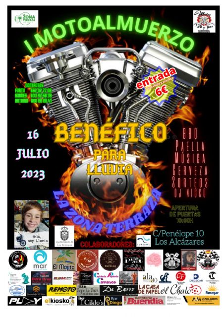Una veintena de negocios de Los Alcázares y otros municipios vecinos respaldan y patrocinan este evento solidario organizado por el club motero '123 y Gas' que tiene como principal objetivo ayudar a mejorar la vida de la pequeña Lluvia, al mismo tiempo que ofrece un plan diferente y alternativo para realizar el próximo 16 de julio en Los Alcázares.