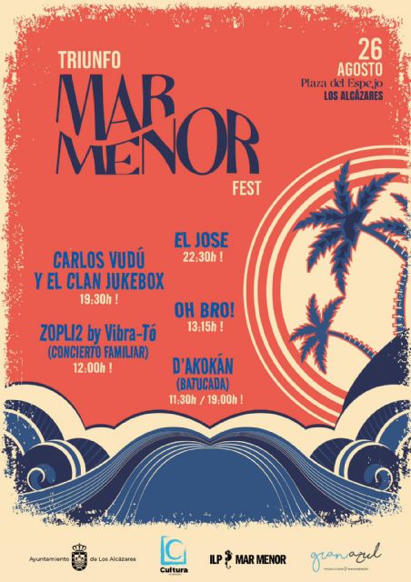 La concejalía de Cultura del Ayuntamiento de Los Alcázares colabora en la celebración de la segunda edición del festival 'Triunfo Mar Menor' que recuerda y conmemora la aprobación de la Ley que otorga personalidad jurídica a la laguna salada y que salió adelante el año pasado gracias al apoyo de cientos de miles de personas.