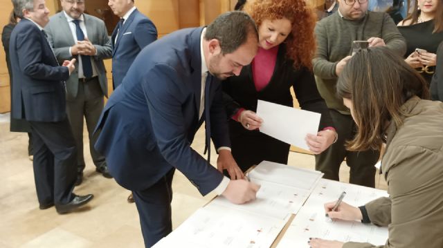 El alcalde de Los Alcázares, Mario Pérez Cervera, ha firmado esta mañana en el Palacio de San Esteban el protocolo que pone en marcha la Comisión Interadministrativa del Mar Menor, junto a otros alcaldes y alcaldesas de los ayuntamientos pertenecientes a la cuenca vertiente del Mar Menor.