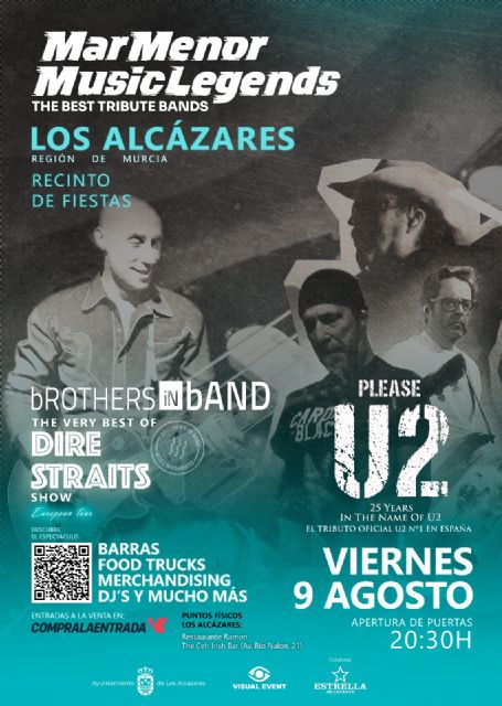 ‘Mar Menor Music Legends’ se celebrará el próximo 9 de agosto en el Recinto de Fiestas de Los Alcázares y contará con la participación de las reconocidas bandas BrothersInBand, en su gira europea con lo mejor de Dire Straits; y Please U2, el tributo número 1 en España al conocido grupo U2.