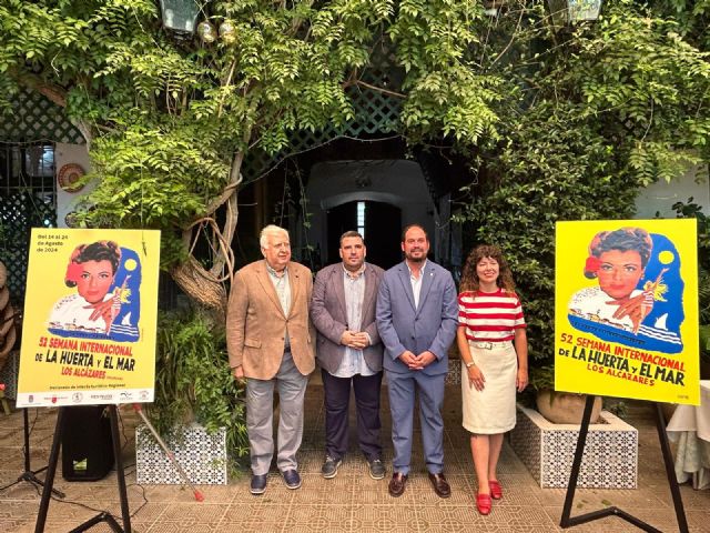 El Ayuntamiento de Los Alcázares ha presentado este lunes, en el Patio del Hotel Balneario La Encarnación, el cartel que representará la edición número 52 de la Semana Internacional de la Huerta y el Mar.