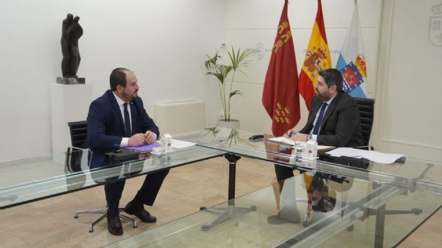 El alcalde de Los Alcázares, Mario Pérez Cervera, se ha reunido este lunes con el Presidente de la Región de Murcia, Fernando López Miras, para hacerle llegar de nuevo las necesidades más inmediatas que tiene el municipio en temas que competen al Gobierno regional, como es el caso de las mejoras en infraestructuras educativas y sanitarias, o el estado de deterioro del Parque de Bomberos de Los Alcázares.