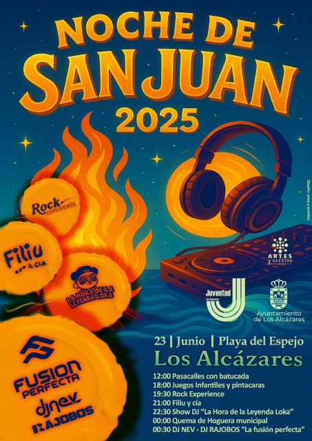 El próximo 23 de junio, el municipio de Los Alcázares se llenará de magia, fuego y música para celebrar por todo lo alto la Noche de San Juan 2025. Y es que nuestro municipio se ha convertido en un lugar de referencia para celebrar una de las noches más mágicas del año y darle la bienvenida al verano con conciertos, actividades infantiles, convivencia junto al Mar Menor y la tradicional quema de la gran hoguera.